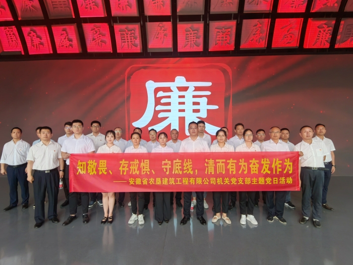 8月14日上午,农垦建筑公司组织全体党员、各部室负责人、入党积极分子等前往安徽省党风廉政教育馆,开展“知敬畏、存戒惧、守底线,清而有为奋发作为”主题党日活动,教育引导党员干部持之以恒弘扬党的光荣传统和优良作风,深刻汲取违纪违法典型案件教训,切实筑牢拒腐防变思想防线。